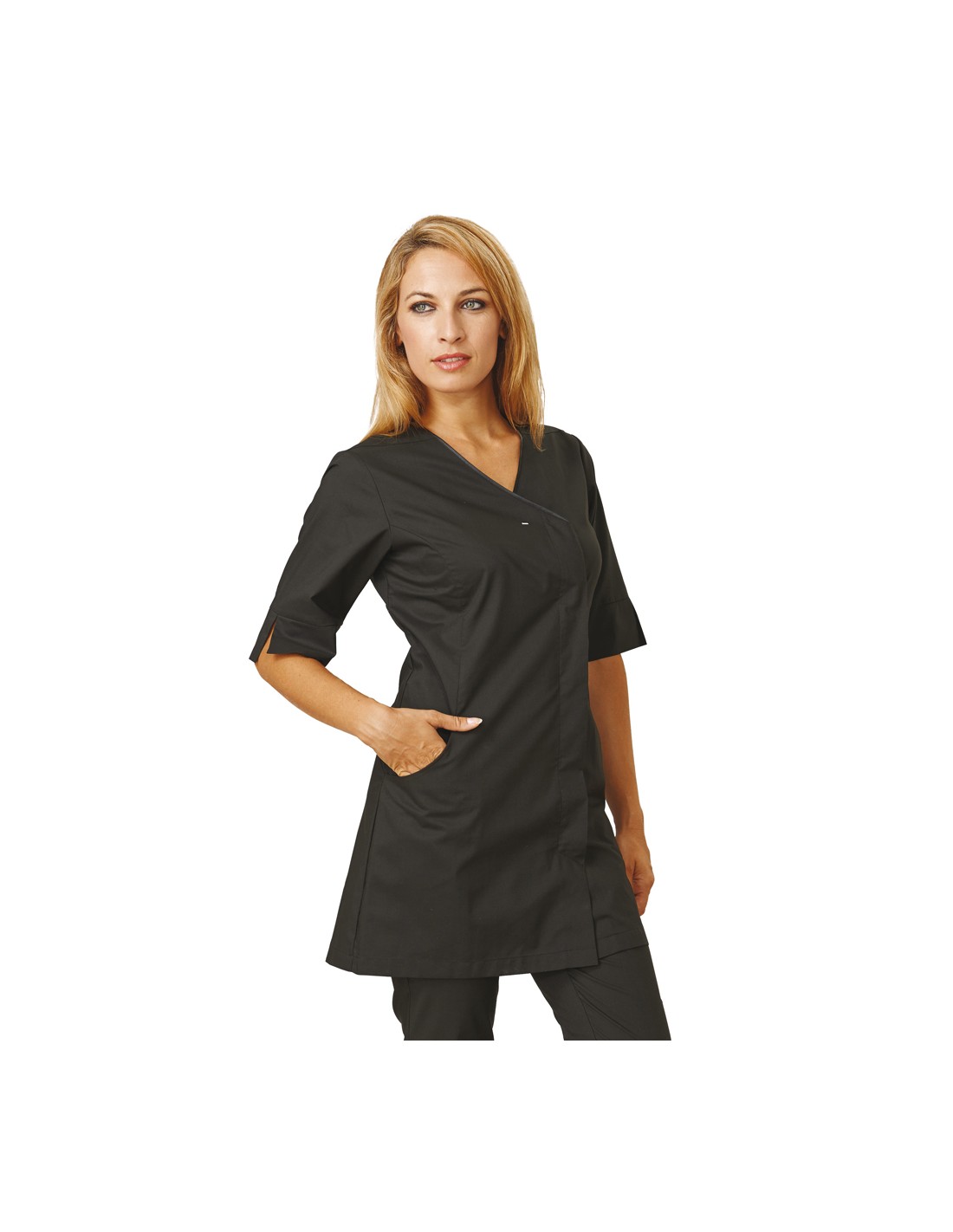 Casaca de peluquería, centro de estética y spa, manga corta, abrochado al costado, detalle en mangas, con bolsillo, cómoda y ligera. Con un diseño actual y exclusivo esta casaca de peluquería es ideal.