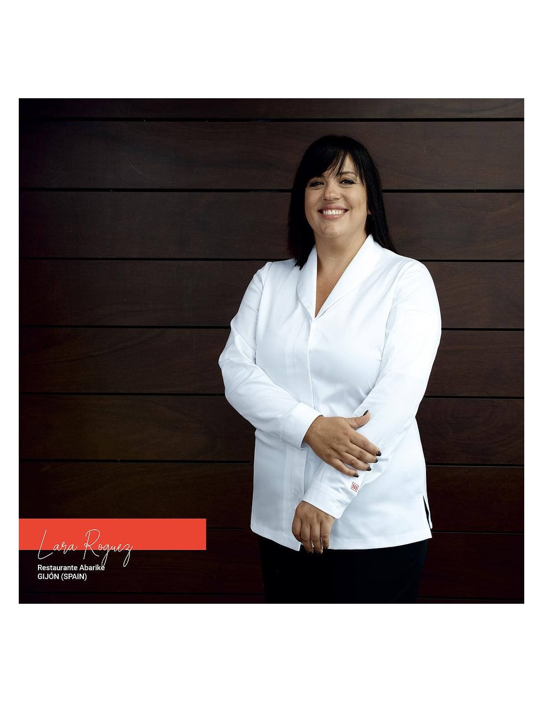 Chaqueta GASTROCHEF para mujer en manga larga, con cuello smoking, cierre central mediante botones de presión ocultos y con bolsillo en manga izquierda. Modelo semi ajustado. Confeccionada con fibra T400 y con piqué COOLMAX en costados. La fibra T400 es una fibra elástica que garantiza el ajuste permanente de la prenda y la recuperación de su forma en todas sus direcciones, ofreciendo estiramiento y recuperación , aportando confort , tacto, resistencia a las arrugas y fácil cuidado de la prenda. Es ideal para cocineros y chefs en hostelería, restauración y cocina en general. Disponible también en modelo para hombre referencia 930014.