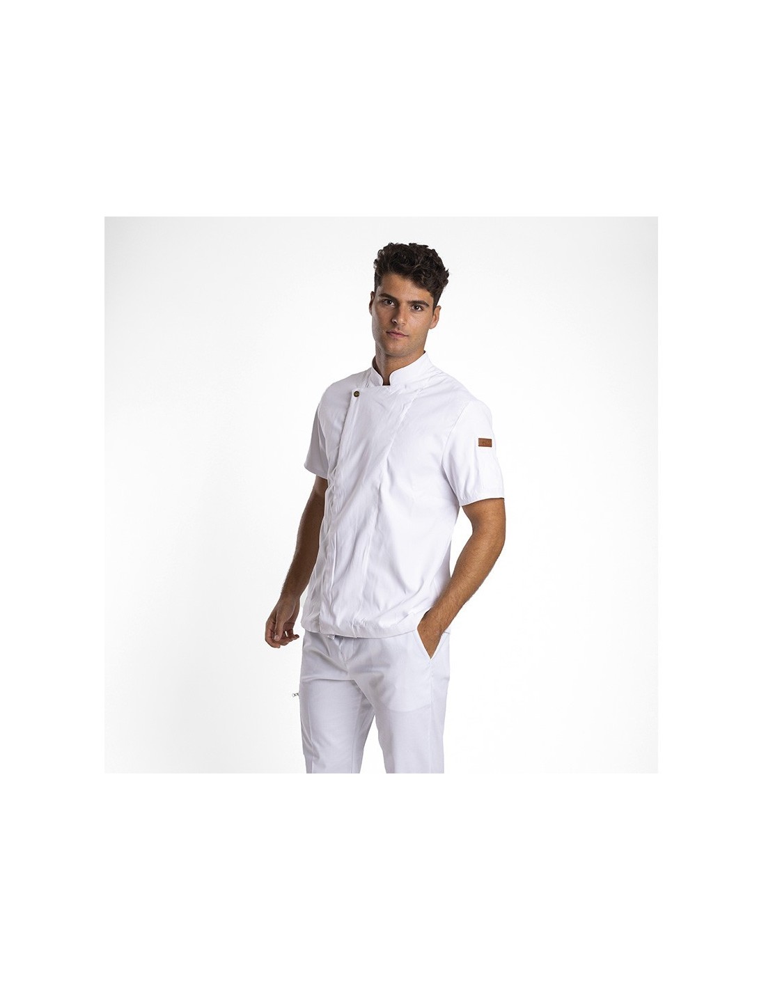Chaqueta cocinero modelo Granizada de manga corta y microfibra.