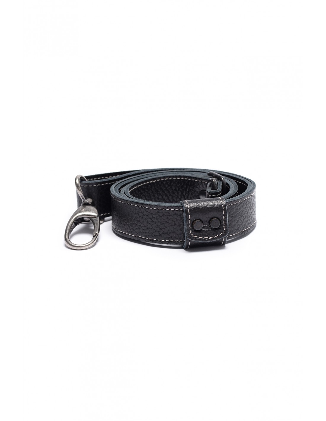 Cinturón de de cuero negro para colocar bolso ajustable con hebilla.