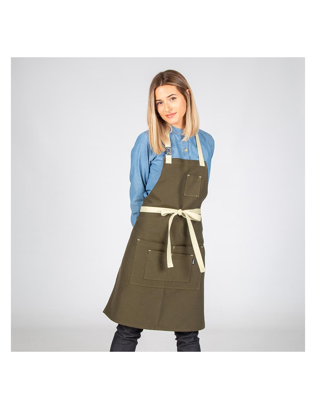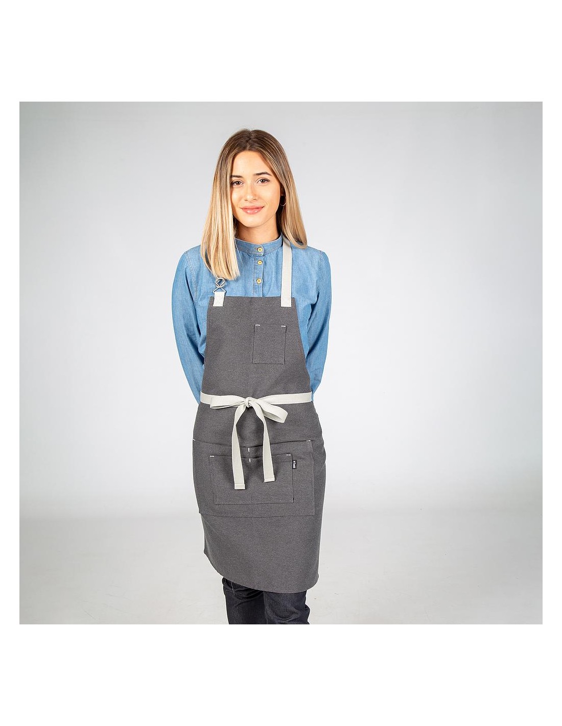 Delantal con peto y hebilla enlazada a elegir entre varios colores.