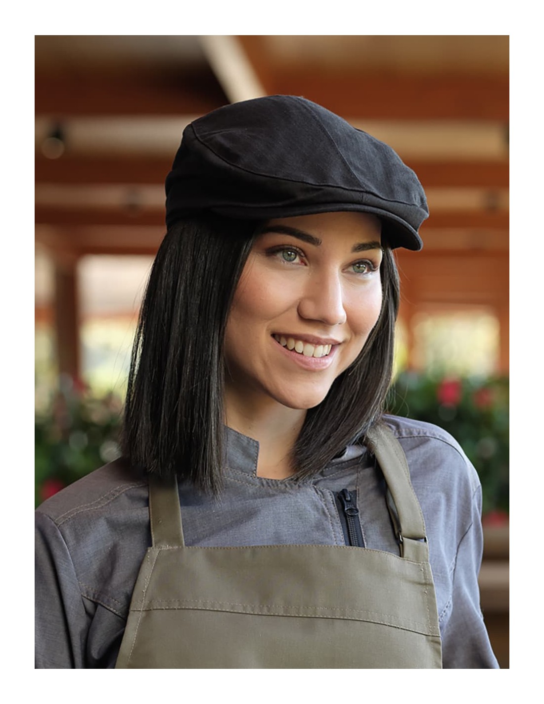 Boina de chef negra ajustable con elástico.