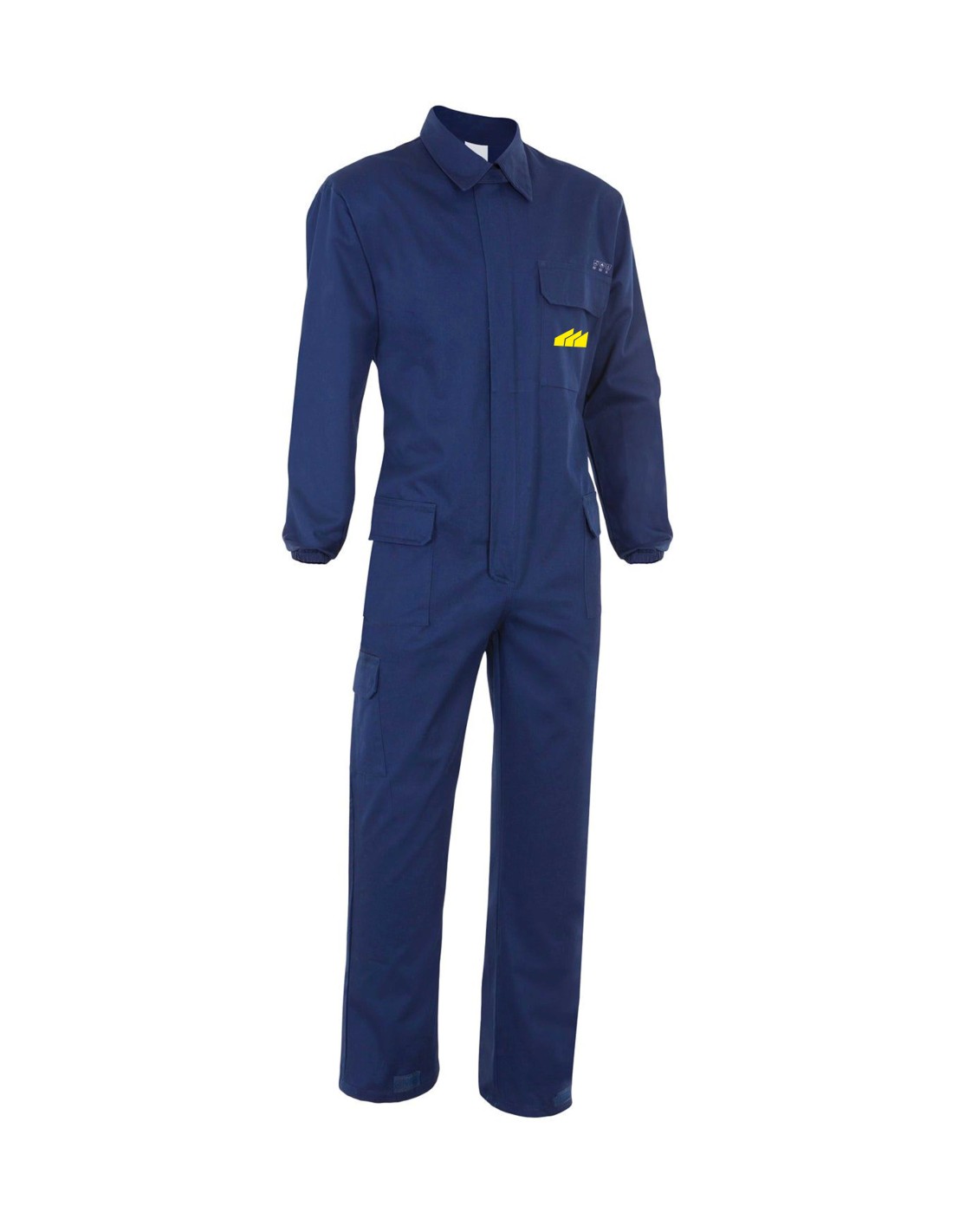 Pantalón algodón ignifugado. Goma interior en cintura. Cierre bragueta mediante ojal y botón. Dos bolsos laterales verticales con forro del mismo tejido y un bolso trasero con tapeta y velcro.