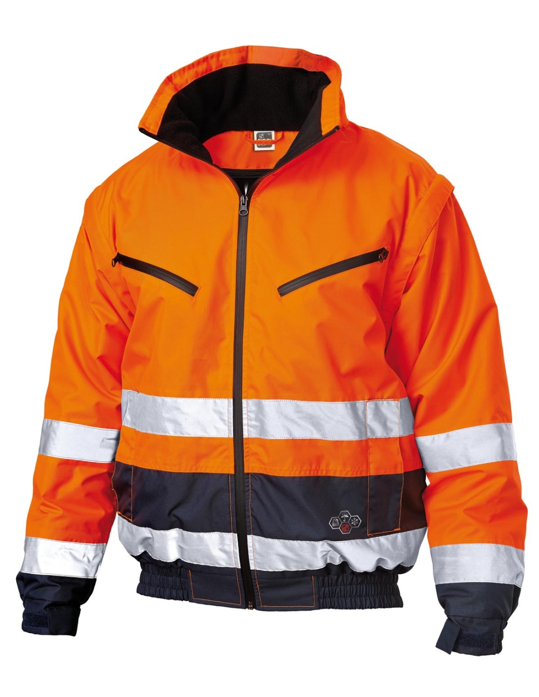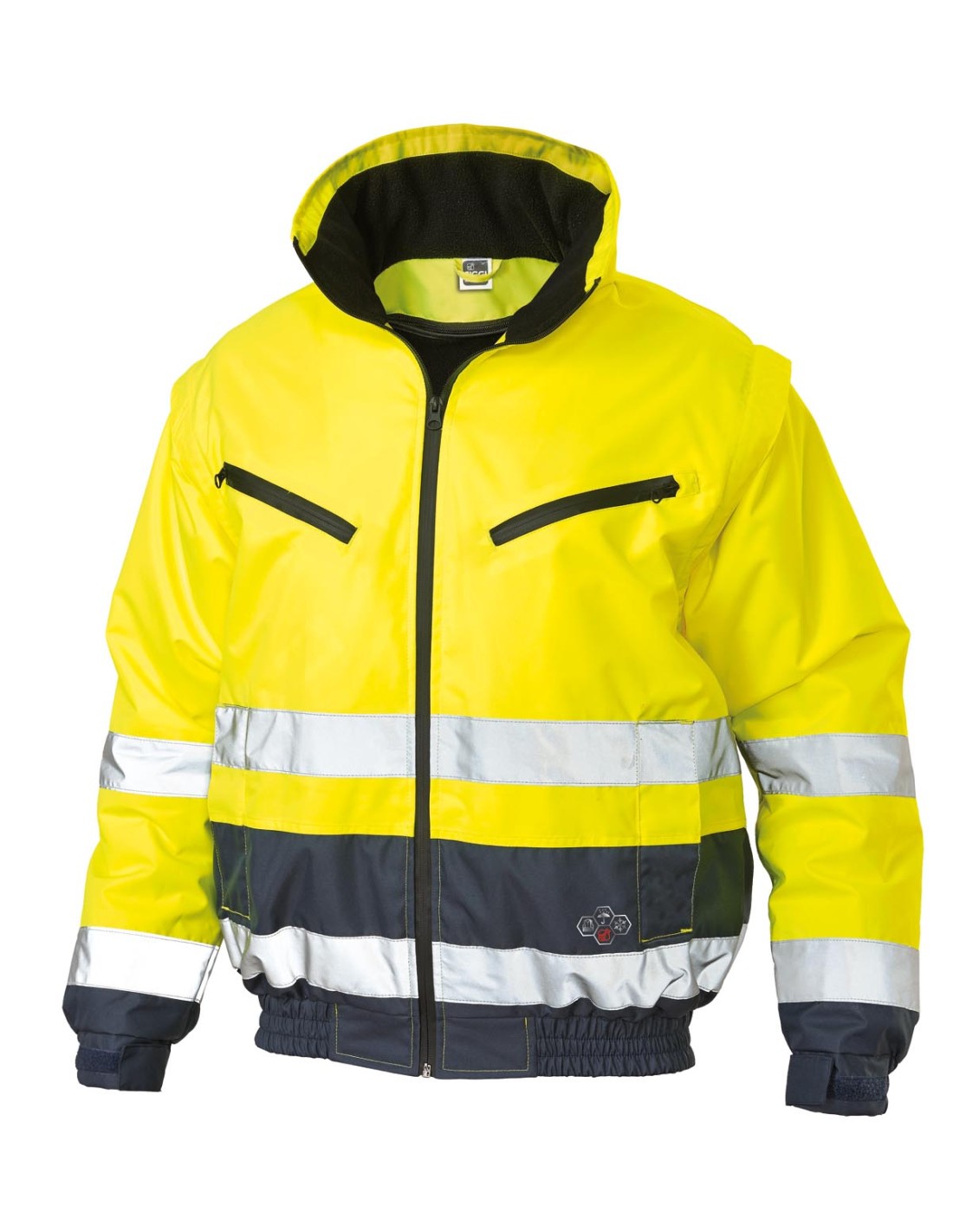 Chaqueta bomber bicolor con chaleco polar desmontable, costuras termoselladas y cremallera impermeable. Capucha oculta, mangas desmontables y ajuste elástico para mayor comodidad. Múltiples bolsillos con cremallera y detalle bordado.
