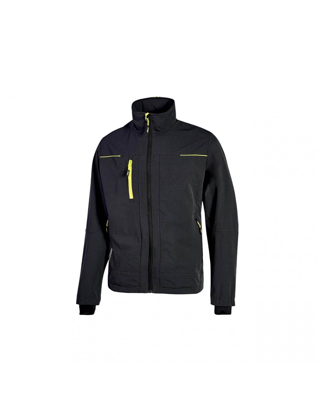 Chaqueta softshell muy fina yresistente, repelente al agua, muy cómoda, transpirable y de secdo rápido. Dispone de dos bolsillos delanteros y un bolsillo con cremallera par celular en el pecho. Dos bolsillos interiores, capucha retrátil ajustable con puño elástico, cinta reflectante en el cuello.